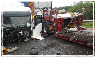 An einem Stauende stand er, mit großem Abstand, der Fahrer wachsam, alle 7 Achsen bremsten, aber der Lkw hinter ihm leider nicht...